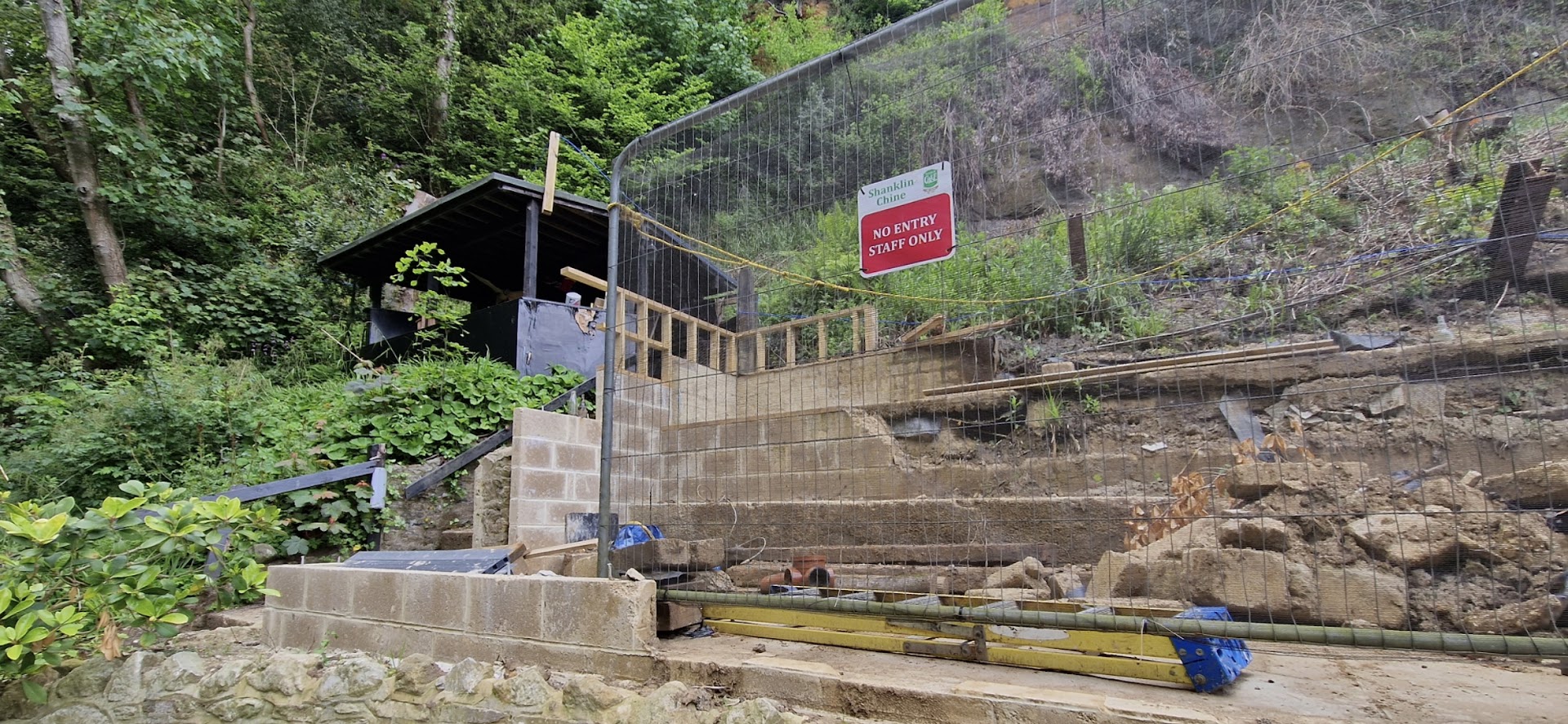 They have added Dinosaur models and big eggs nestled into the sides of the chine. The sides of the Chine are collapsing so I'm not sure why putting massive eggs up there is a good idea.. perhaps why the insurance is needed?