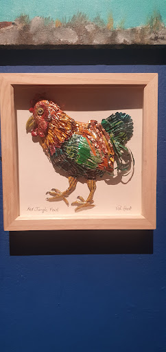 One piece of recent art in particular, an upside down tree, hangs above the minerals display - a point we raised with a staff member as to whether or not there would be more symbolism if the minerals were below the roots rather than the branches. However, the context is for the artist to decide.