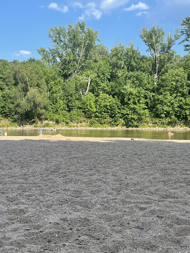 Great spot to cool off on a hot summer day. Large parking lot with no fee. Warm, shallow water, with deeper water available towards opposite bank. The beach itself is sandy and long, with lots of room to get away from tourist crowds. There were porta-potties and trash barrels available when we visited, and most people were respectful regarding carry-in, carry-out.