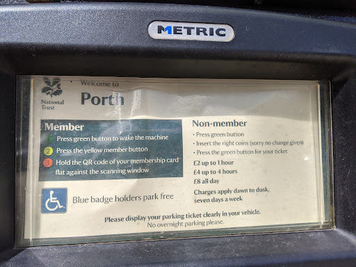 Parking at both St Anthony Head and Porth £4 for four hours, coins only OR via the app PAY BY PHONE. Would recommend you download the app beforehand as there is no signal at the car park. Once you're at Porth car park, go close to Thirstea Co and you can join the national trust free WiFi (even if you're not a member) to complete/pay for the parking via the app.