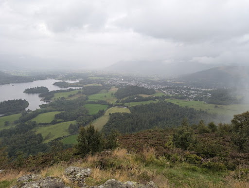 What a beautiful walk to Ashness Bridge. Very easy if you're fit, even doable if you are not. We walked with our two kids, 4 & 6, with minimal whining. About 4 hours at a very slow pace with some stops. Our path started from the access point just up the road past Castlerigg Farm, on the right. Take that path following the water to the bench, then hang a left through the Great Wood all the way to the National Trust Car Park. It's entirely downhill. There was a lovely National Trust lady in the car park with oodles of info if you want to talk to her. From there you can continue on further to the bridge. If you want to go more, you can go up to Walla Crag. The ascent is gradual enough to do. There is a steeper way up if you want, you can see on the path signs. When you get to the top, hop through the triangle stile to get on top of the rock for great views, then back through the stile and follow the path down with the wall on your left. This will take you all the way back...