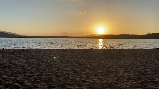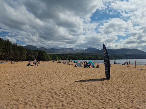 Loch Morlich Beach is a picturesque sandy beach located near Aviemore in the Cairngorms National Park, Scotland. It is situated on the shores of Loch Morlich, which is surrounded by stunning mountain scenery, making it a popular destination for locals and tourists alike.