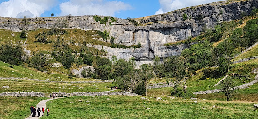 If ever I've been to a beautiful and interesting place it was Malham Cove! It is a large circular walk with Janet's Foss to visit along the way (if you choose to do the circular walk) You can choose to go straight to the cove and bypass Janets Foss which makes for a shorter walk. If heading straight to the cove you can park up at the visitor centre (paid parking) and walk through the little village where it will be signposted to the cove, The path is well maintained, taking this route you will arrive at the bottom of the cove where you can go straight into the cove itself and admire the height of it from the bottom. You can then take the Stone stairs up to the top of the cove if you wish (the views are amazing) where you will be welcomed by a stunning limestone pavement (which is very uneven and not suitable for pushchairs) There are no barriers at the top so make sure to keep your little ones close by and dogs on a lead as the drop to the bottom is sheer!!! If you are wanting to do the circular walk and see Janet's Foss (waterfall) then leave from the visitors car park and avoid going through village, instead look out for a small signpost a small brick building which will take you across a small bridge and just follow the grassy path until you get to the falls, aprox 20 min walk. From the falls you can continue your walk to Malham Cove, From the to top of the falls follow the road to where you will see a little coffee van, a gate is located just behind the coffee van where you will climb a steep path over the Yorkshire Dale's, finally crossing a road and then over a sty, Continue your walk until you reach the top of Malham Cove. We went on a Sunday and it was super busy so lots of people around to ask for directions if you did get lost. Highly recommended, it is a moderate walk and hilly in places. There are toilet facilities at the visitor centre and ofcourse there is a pub in the village which was very popular. Alot of people parked on the roadside to avoid paying for parking at the carpark. We did the circular walk and included Janet's Foss, My photos on this review are just of Malham Cove, I will do a review on Janet's Foss and leave photos of it there so look out for my post...