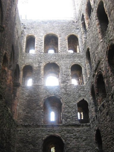 Situated on the River Medway and Watling Street, Rochester was a strategically important royal castle. During the late medieval period, it helped protect England's south-east coast from invasion. The first castle at Rochester was founded in the aftermath of the Norman Conquest. It was given to Bishop Odo, probably by his half-brother William the Conqueror. During the Rebellion of 1088 over the succession to the English throne, Odo supported Robert Curthose, the Conqueror's eldest son, against William Rufus. It was during this conflict that the castle first saw military action; the city and castle were besieged after Odo made Rochester a headquarters for the rebellion. After the garrison capitulated, this first castle was abandoned. Between 1087 and 1089, Rufus asked Gundulf, Bishop of Rochester, to build a new stone castle at Rochester. He established the current extent of the castle. Though much altered through the centuries, some parts of Gundulf's work survive. In 1127 King Henry I granted the castle to the Archbishop of Canterbury in perpetuity. William de Corbeil built the massive keep that still dominates the castle today. Throughout the 12th century the castle remained in the custody of the archbishops. During the First Barons' War (1215–1217) in King John's reign, baronial forces captured the castle from Archbishop Stephen Langton and held it against the king, who then besieged it. The Barnwell chronicler remarked "Our age has not known a siege so hard pressed nor so strongly resisted". After resisting for just over seven weeks, the garrison surrendered. The castle had been greatly damaged, with breaches in the outer walls and one corner of the keep collapsed, and hunger eventually forced the defenders' hand. The castle did not stay under John's control for long: in 1216 it was captured by the French Prince Louis, who was the new leader of the baronial faction. John died and was succeeded by his son King Henry III in 1216; the next year, the war ended and the castle was taken under direct royal control. Rochester was besieged for the third time in 1264 during the Second Barons' War (1264–1267). The castle's royal constable, Roger de Leybourne, held Rochester in support of Henry III. Rebel armies led by Simon de Montfort and Gilbert de Clare entered the city and set about trying to capture the castle. Again the castle's defenders resisted, this time with a different outcome. After a week, the rebel armies raised the siege in the face of relief from Henry himself. The garrison did not surrender, and the castle suffered extensive damage that was not repaired until the following century. The castle saw military action for the last time in 1381 when it was captured and ransacked during the Peasants' Revolt. As Rochester Castle fell out of use its materials were reused elsewhere and custodianship was relinquished by the Crown. The castle and its grounds were opened to the public in the 1870s as a park. At various points during the 19th and 20th centuries repairs were carried out. The castle is protected as a Grade I listed building and Scheduled Monument. Today the ruins are in the guardianship of English Heritage and open...