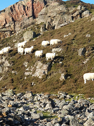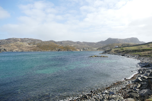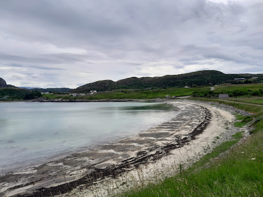 A real hidden wee gem of a beach on a coastline that has dozens of amazing beaches , it has a small car park next to the bird hide just along from the campsite .You can walk past the graveyard out to the end of the peninsula for spectacular views up and down the coast ,when we visited the water was a wonderfull turquoise colour but there was no sign of the highland cows said to be in residence in one of the fields but we did get to meet 2 small pigs who were delighted...