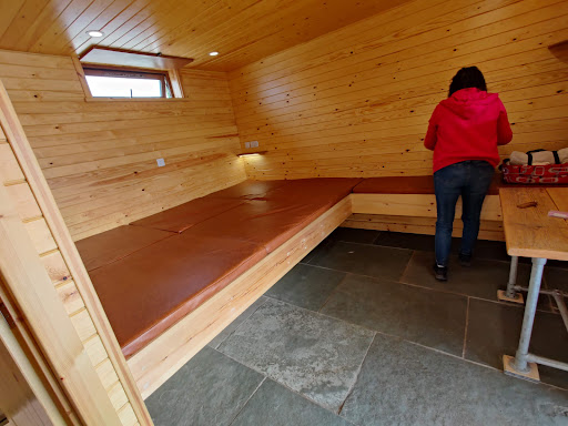 Underfloor heating all using natural resources if I am correct A huge bed with an interesting mattress, you will either love it or hate it. The same happens when you are camping. In my view, it was brilliant. A kettle, a microwave and a fridge. A sink, a shower, a proper working toilet indoors so you don't have to dig a hole. A couple shelves, a table indoors and a big dinner table outdoors with a couple of relaxing chairs to enjoy what I would say is spectacular views.