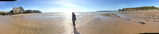 This is nature’s masterpiece! A truly gob smacking place. I parked the car approximately 1.5 miles north from Three Cliffs (just slightly north from the golf course) and I followed a brook down through a rich area of woodland. The woodland didn’t last for long but it opened up into a stunning hidden green valley with the brook now more of a little river meandering it’s way down and out of sight. Even though you’re in this lush green valley you are constantly reminded of how close to the sea you are as the main path is mostly made of sand (so it can be hard work). There are several little paths going down through the valley but I decided to stay on the main path as I wanted to see the castle ruins... yes there’s castle ruins. You need to divert off the main path that follows the river when you’re about half way down through the valley, where you’ll see a path (again sand) that leads of the main path directly up (it’s a tough but short climb) and at the top is the remains of what appeared to have been a good sized castle. You then stay at the top of the valley on the side of the golf course and follow the path all the way until it comes out right on the actual cliffs that form three cliffs. It’s best to go when the tides making its way out so you can walk down the footpath into the small bay next to three cliffs and then circle around the main rock formation and enter three cliffs... warning you will need to cross the river that flows right the Three Cliffs but as long as you go when the tides out then it’s...