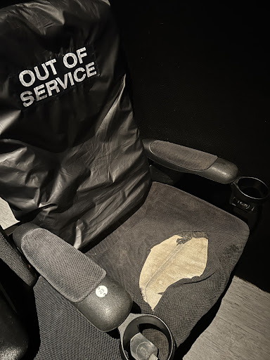 Next, the dated theme continues in the screens with torn VIP seats that have become very uncomfortable with never being updated since opening. Not to mention I was seated in a chair that has no backrest ...