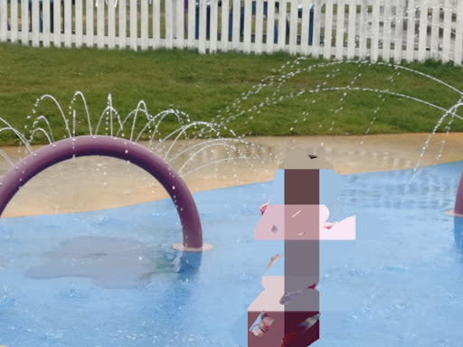 The central part is the water activities; a series of water fountain and spraying devices. The kids were running around, splashing each other, and sitting under the fountains laughing at the adults.