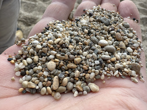 It's actually not a bad beach either. It's a long stretch of beach but if you're looking for sand, you're looking in the wrong place but the stones are of the tini variety that are easy to walk on.