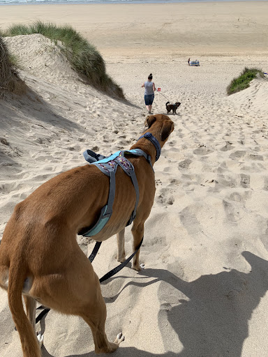 My first ever Google review as I simply feel the need to here. We have two stars as the beach is beautiful, like many other Cornwall beaches. However.... get your hiking boots on kids. We parked initially near Hayle Beach as we couldn't find anywhere else. The lifeguard advised the dog friendly beach was 'just the other side of the cliff, 5 minute walk if you follow the path'. The path was about 20cm wide and up and down over rocks, bushes, well... over a cliff. We arrived 30 minutes later and was greeted by what can only be described as a ski slope of sand. Great going down (albeit awkward with kids and puppy in tow), impossible to get back up unless your some kind of professional athlete (I'm mid 30s and fairly active). I made the mistake going back to the car and trying to find somewhere closer. Well after an hour I stumbled on Sandy Beaches car park which presented me an even longer walk to where my family was and slope which felt like Mount Everest. Back up with thr family took an eternity and I scraped out of the car park with minutes to spare on my 2 hour stay despite turning straight back after rejoining my family. There were no facilities I could see including basics of toilets near by, let alone somewhere to get water or wash off your feet. Alot of beautiful places are worth the effort to get to, this one...
