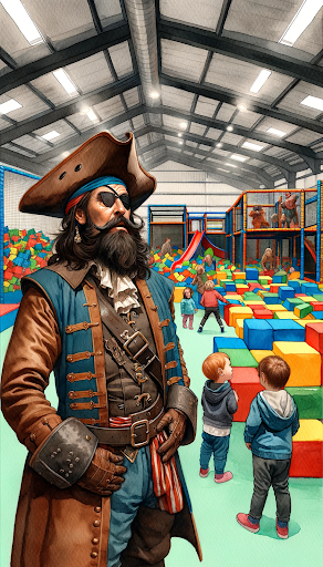 'Twas a bright morn, me trusty ship anchored, and I set foot on the sandy coves of the play area, hopin' for a day filled with merriment. And by Davy Jones' locker, the place didn't disappoint! It was a land filled with wonders, a true pirate's playground where even an ol' sea dog like meself felt like a young buccaneer again.
