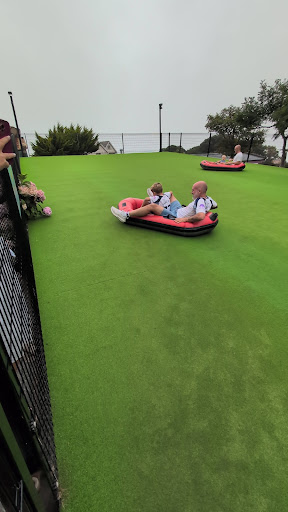 The busiest bit of the park tends to be the bit on the right with the rollercoaster, teacups, and water slide ride. All three are fun but can get a bit of a queue at times. Despite being a water slide wide you’re riding on a rubber dingy so don’t get wet. Or we didn’t.