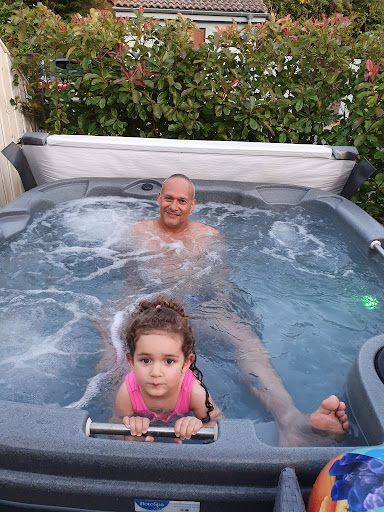 Some chalets have hot tubs in the back garden, and some have them in the front. Ours was in the front. This was a bit wierd at first, but we soon realised that lack of privacy was not a big issue, because the shrubbery surrounding the hot tub, and the vehicle provided enough cover. I was in the tub, butt naked within 2 days!