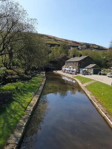 Set in the Pennine hills around Marsden, Huddersfield is this little gem. We parked near to the railway station which is above the village as the canal runs alongside the railway line. It's a lovely tranquil 15 minute walk along gravel towpath with a parallel woodland walk alongside to the Standedge Tunnel and visitor centre. We walked there and got the free barge shuttle back, although the barge do hope people will donate as it's a voluntary run service. The mill is where the museum is although we didn't go in as was only out for a walk being reasonably local. There is a cafe (converted pub)which serves warm drinks and snacks and has a loo. It is adjacent to where the main barge through the tunnel departs and alights. There are picnic tables and plenty of green space to sit and while away. After our visit we took a stroll down the hillside to the village which has eateries and a beautiful church area to stop. A good day out if you're doing the tunnel too....
