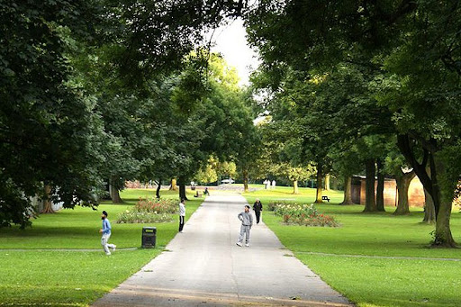 I used to play here as a child many a football game here during the summer until you couldn't see a ball! Its more or less well kept, is a decent walk around 1.6m full round top to bottom. Used to have 3 bowling greens at one time still do bowls here today. We often go cycling here as its local 5mins up the road on bike its not on level gradient, has a child's park under 5's and a seperate one for under 12's, seems to get vandalised by teenagers from time to time. Also has a few outdoor gym machines out there and a small rock climbing wall for tge younger children. They have a cafe here and it plays host the leeds festival. Also now and then you get the odd idiots who hang around in groups and its a no go area during sun down as there have been a few...