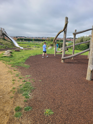 Lots of friendly people walking well behaved dogs. Teens having finished school for the day were enjoying the adventure / climbing area for over 12's - or just gathered for a chat. The under 12's play area was empty but full of climbs, swings etc - all made out of wood, no plastic.
