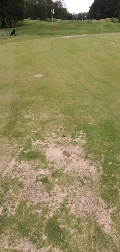 Allerton Manor golf course is still being revamped, so only 16 holes are currently open. My understanding is that they are aiming to make the course championship standard. However based on today that goal must still be a few years away. Although it's been a dry spring & summer, other courses are in far better condition. Several fairways were rock hard and many of the greens patchy. I was shocked by the state of the 14th green (see photo). The 14th also has mats - a proper tee area in summer surely is possible. The layout is uninspiring and doesn't flow very well in my opinion, there's a lot of walking between holes but for a short course not a real problem. After the 12th there is a pathway (which reminded me of the Forbidden Forest in Harry Potter), along the way there was another sign pointing to the 13th, but back to where we came from. We searched for the 13th tee without success, so when we found the 14th we just played on. At the 15th green there is a sign (see photo) saying to ring the bell to let players behind you know the green is clear as it's a blind approach (funny in itself to be hitting to a green that is impossible to see), but there is no bell attached. I haven't played on a course this poor in a very long time. On the positive side, the outdoor area by the sports bar is excellent. Food (burger was great) and drink in the sun went down well. The expressionless waiter was going through the motions though. When he brought our food he mumbled something about cutlery & condiments and walked off. We watched to see if he was bringing us any, but when he moved on to other jobs we went looking for them ourselves. Today was a very mixed one. I'd probably return for a drink, but not the...