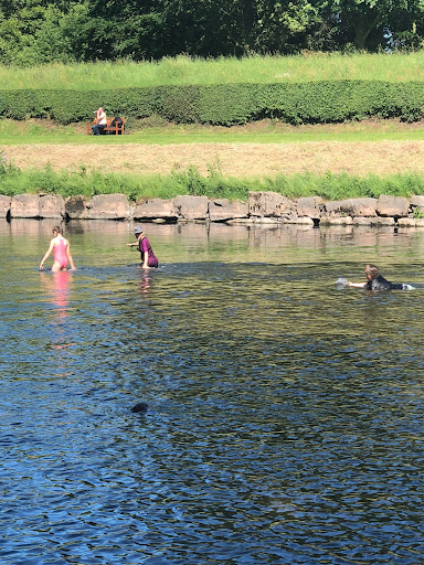 I come here nearly every day for a walk by the river and sometimes read my book on the bench by the river its lovely here ,I see a lot of dog walkers,children in the park and in the river, there is a small car park,toilet facilities,burger van and benches for picnics,there is a bigger car park free in the village...