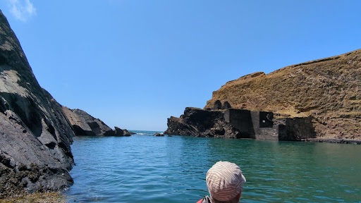 The Blue Lagoon is accessible on foot from Abereiddi carpark or by the sea. Weather permitting, and around high tide, it's a short paddle from the shore over to the entrance (just out of view from the beach). At lower tide levels there wouldn't be any access by sea as the rocks are exposed. We arrived just before high tide, leaving us with plenty of time to explore after we set off by canoe.