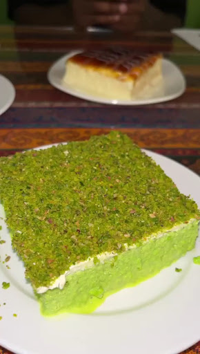 We chose to visit Antepzade since we were craving something sweet, and we had heard positive reviews from a friend regarding their milk cake. Upon entering, we were welcomed by a vast array of cakes and a sweet aroma. We really liked the interior design of the spot, with the walls having multiple contours and the green seat to match the Antepzade logo. We chose our seats and then proceeded to pick our desserts, we chose the Pistachio Milk Cake, Caramel Milk Cake, and the Small Oreo Sponge. All tasted absolutely delicious, but our favourite was definitely the Pistachio. The only issue we saw is that one of the staff members may be ill-informed on the menu and ingredients, we went there with a child who has a nut allergy. When we asked about which cake would be a good option for him, we were recommended as Pistachio Cake, we decided to use our own judgement and pick a cake, which seemed to be fine. It was alright for us, as we had the equipment to help him, but for another person, the outcome could be more dangerous. Overall, we really enjoyed our time there, great tasty cakes and friendly people. Next time, we will try the baklava.