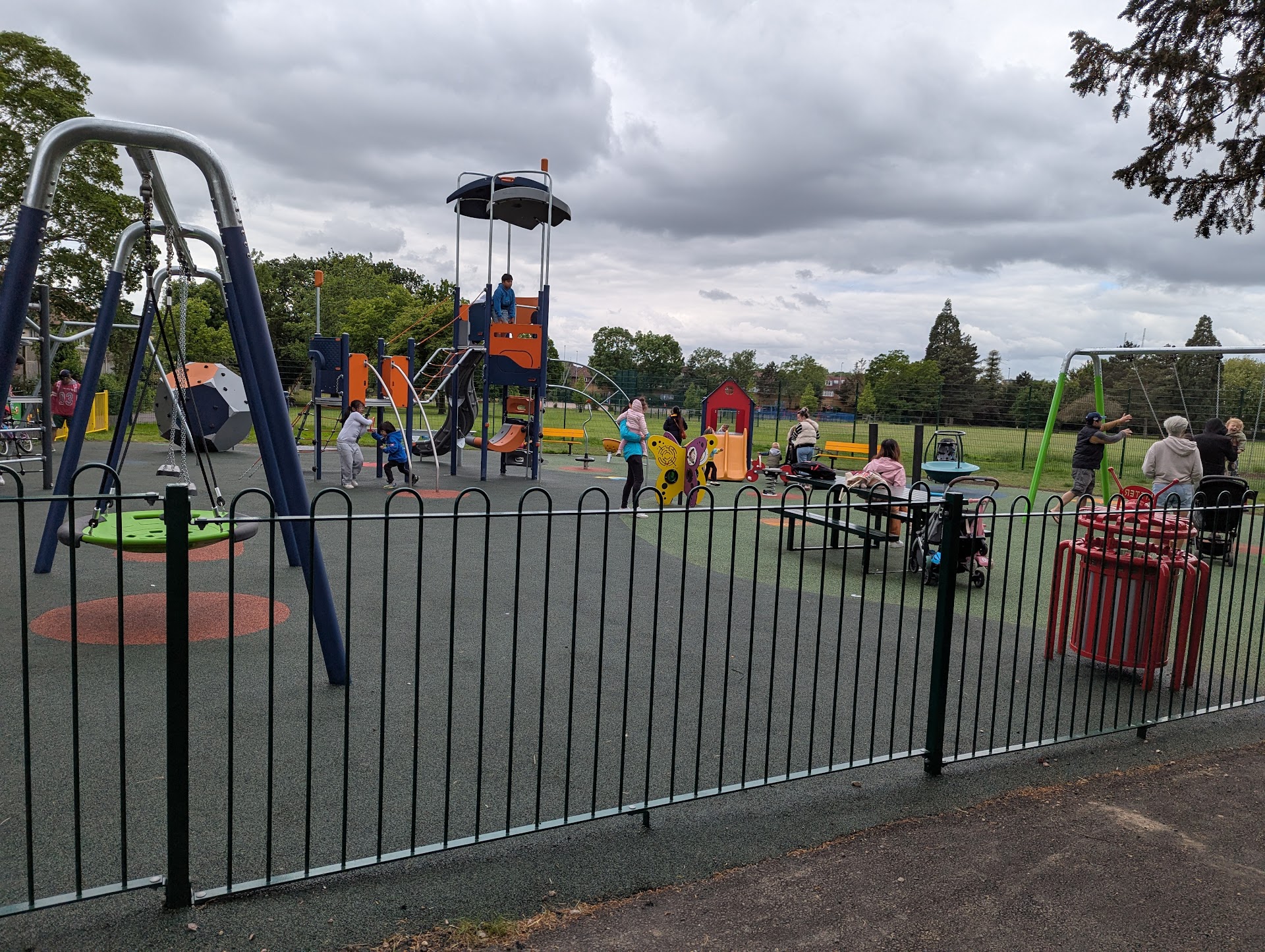 Well this was my childhood park . It used to support birds and small animals through its huge bushes and trees , Not any more , the 2m boarders are no longer able to support the wild life of old , the bushes and trees we used to hide in as dens all gone , The children's playground was empty , Its the Easter holidays, I wonder why , may be its because its so boring no child would wish to.play there ,the slide the swings the swinghorses even the seesaw all gone .