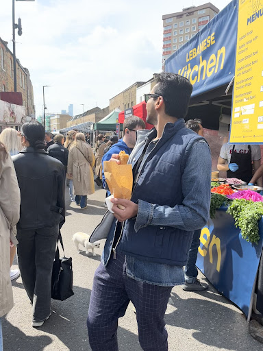 Saturday is not a farmers market or a food market. It just happens to have food in the mix. You can buy from the street food stalls and from the farm stalls, the specialities stalls like oysters or cakes and churros or gluten-free bakery. But there is also a dog related stall, books, records, jewellery, pictures, new and vintage clothes, children's clothes, artists, and makers of all sorts. The visitors used to expect shopping, then also some lunch options. Now the road is packed with so many people just for the food stalls that we need to shout a bit about the other aspects to keep it uniquely Broadway Market. So many shops have been turned into cafes...