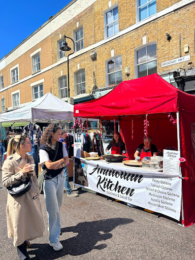 Read moreGreat place to spend an hour or two on a sunny Sunday, especially if you enjoy a bit of dog spotting. A mix of food (with some incredible smelling meat options), clothing, jewellery, flowers, art and other stalls to browse. As a veggie and a pesci we opted for vegetarian momo, a veggie onigiri (which looked rather more like a Japanese taco) and a salmon handroll from three different vendors. There are plenty of picnic tables set up on the street to sit at and we had no problem finding a space quickly. We also picked up some chilli pate and etna pesto from the cheese stall, some 'handmade in Hackney' trousers and a hairband from clothing and accessory vendors. I'm a big fan of the shops on Broadway Market too - in particular the book shops. Very near to Columbia Road Flower Market, Hackney City Farm, Victoria Parkand of course the...