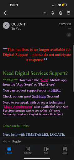 Read moreI read the reviews on here and realise I am not alone. After 4 years at CU Coventry (4 painful years with no support and understanding of what I am doing), I decided to go for an MBA with CU group. The application process was quick and then all went downhill. Was getting close to the start of the course and receiving no contact, I have contacted the university instead, been asked to complete a RTS and after 3 more days still nothing. Drove to CU Coventry in Dagenham (where I thought I will be studying), just to find out that is not where I will be studying and that I am not ready to enrol to this course due to my BA reverting on my Solar and showing an outstanding module. The ladies that managed the engagement team have done their best to support and sent me on my way advising that someone from Liverpool Street centre will be in contact to make an appointment for a face2face RTS. Of course any of my complaints have remained unresolved and not responded to. Of course I had to take another day off work to go to Liverpool Street and get this resolved. Of course I have social anxiety and London’s crowds are giving me panic attacks. Of course I checked what I agreed to when I accepted the offer, and the address where I would be studying was not on there. I now agree with all the other people saying they have dropped out, there are valid reasons. Their building is nice and staff slightly capable, so I will give...