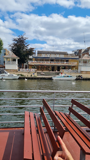 What to do on an extremely hot, very sunny, and incredibly humid Sunday? We decided to catch the public boat from Hampton Court to Richmond. Just one of many trips and locations. We were not disappointed! Oh, cruising along on the top deck, the breeze was just perfect. We could forget about the humidity for an hour and a half! Highly recommend a trip, it was so different to anything else. Be mindful, the directions to the landing stage are excellent, but there's a couple of different company's boarding points - make sure you read the signs properly. Thames River Boats is practically parallel to the Palace, and it has a small hut. The vessel was bang on time. No problems getting en board and very safe. Once seated, our captain gave a short but obviously essential safety talk. Boring.. not! Our captain was absolutely hysterical! Thankfully, there wasn't much commentary, but when he did, it was so funny! Essential: Bar (reasonably priced) and toilets below deck, albeit a different flushing system. The 90 minutes flew by. Extremely relaxing, plenty to see and going through the lock at Teddington was interesting. We took a one way trip only to Richmond. Drop off point is just before the main, traffic bridge, not by the White Swan pub (which I assumed it would). All of a 5 minute stroll. I wish I'd got our host's name, but sadly, I didn't. £14 one way. As a treat, well worth it. Value for money and a great trip for locals and visitors alike. Just a couple of landmarks along the way. P.S. return journeys are readily available. We chose to take the ferry/boat to Richmond, enjoy the Riverside, then catch the bus home. 20 minutes was far more attractive towards the...