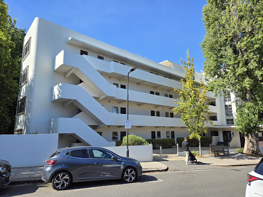 Wonderful small gallery located at the iconic Isokon Flats, one of the pioneering modern buildings of 1930s Britain. The building was designed by Wells Coates (1895-1958) for Molly and Jack Pritchard. Among the famous residents were Walter and Ise Gropius, Marcel Breuer, Laszlo Moholy-Nagy, and Agatha Christie (plus a number of Soviet spies). The building also spawned the design of the eponymous Isokon furniture. The gallery and its volunteer staff do a great job illuminating the history of the building, which was lovingly restored in the early 2000s after having been quite run down. Isokon resident Paul showed us his beautiful flat. Lovely bookstore at the gallery. The design of the Isokon Flats reminded me of later designs by Zaha Hadid with its long...