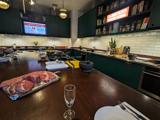 Overall, I would not recommend this experience, which is a real shame as we are big fans of Jamie and the food we made was actually delicious. But I had paid for a 90 minute class, we spent 30 minutes standing in an awkward line watching someone cook, only 30 minutes cooking ourselves and the remaining 30 eating the food. There were too many things about it all that left about taste in our mouths, so overall it was just...