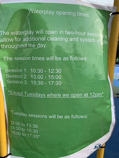 Read moreThis park is great! So much to keep children busy on a hot day and to cool down. The splash pad is great but it can get pretty busy, understandably, but it is still very much enjoyable. There are toilets and changing rooms here. The sand covered playground has a pirate ship and some cool giant fossils for children to dig and find. There are other bits to play on too. There is another playground right next to it for the older children, it is really cool that they have hopscotch numbers in various languages and an area for learning alphabet sign language! In this particular area of the park there is a water refill station which is handy for hydration. Upon the entrance to the park there is a large grassy area perfect for a picnic or some ball games etc.