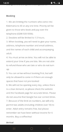 This is a late review as itās been nearly a year since I was here. I came here for my sons birthday with some of his school friends. It was quite crowded on the day but the staff had set up an area with drinks and seats for parents and kids. My sons got hungry before we could go into the party room so I bought some food for them and I was pleasantly surprised, it was tasty and hot. They were able to store the birthday cake and presents in the staff room as there wasnāt a lot of space while we were waiting for the party room to be cleaned. The kids had fun and wanted to stay longer but i as the parent was ready for it to be over lol. They called for the party to go into the party room where I have to say the person who was plating all the food was doing it ever so slowly but then I realised she had lots of time to plate it up while the kids were playing so she took her time so the food looked presentable. The kids food was basic and plain but good for fussy eaters. Drink for the kids was unlimited. I did notice that the room was a bit smelly from the kids party before but the staff cleaned it well. The room is small and parents stand around but youāre not in there too long to complain. Overall my son had a ball and although it may seem like 2 hours isnāt a lot - itās plenty of time for the kids as my kids were completely knocked out by the time we got home. All his friends seemed to of had a blast too. This is a cute little soft play place and 1 of only a small amount. Unfortunately I do not live in the area anymore and Iāve noticed a good soft play is hard to find. I hope they stay opened as this is a good one especially if you live in the area. Thanks for having...