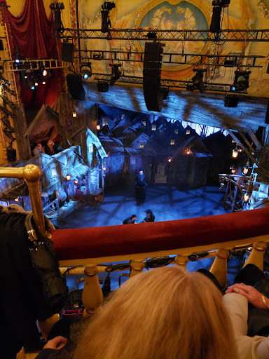 The part prior to the start of the performance was perhaps not as fun as I'd hoped. The prologues were good but a lot of people were crowded into a small area which got very hot, and the air conditioning wasn't up to the job. Also, while I'm very supportive of gender-neutral bathroom facilities, I think the policy at this theatre resulted in a few issues. As a man, I only wanted to use a urinal, but when I chose that bathroom, there were five 20-something women waiting there for the 2 cubicles. It would have been inappropriate to use a urinal in their presence so I had to join the cubicle queue, which resulted in everyone having to wait longer than needed. Later on, my wife wanted to use a loo but was scared to go in by herself, in case there might be a man in there, so I had to go in with her, and then a man, who was in there, told us off. I think there's potential for embarrassment and women feeling unsafe in this situation. A more sympathetic solution, used in many other contexts successfully, would be to label toilets more explicitly as male, female and gender neutral rather than just noting on the door which ones had cubicles or urinals.
