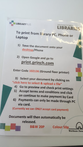 Way too much noise!!! And too hot in the summer.. No point in reporting noise, staff take no notice. Maybe they can't hear me. Worst library in London by a long country mile!!! Hand drier in toilets not working for at least four weeks. Can't dry hands after using toilet. I have e mailed council about it. Bet they do nothing also. Avoid this library at all costs!!! There is more. I visited this library a few months after my review and was told I could not wear my own mask in the library. I had to wear a mask provided by the library. The assistant produced a mask from the drawer using her bare hands. God knows where the mask had been ( or her hands) for all I know somebody may have worn that mask before me. Absolutely disgusting!! The local Health Authorities should visit this...
