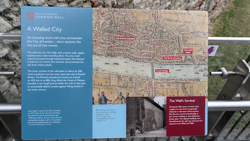 Read moreThe London Wall was a defensive wall built around 200BCE by the Romans to protect Londinium. The defence of Londinium was originally a mound and ditch around the first fort, built around 120BCE, but expanded 80 years later to enclose the city. Only tiny fragments of the wall remain, such as the photographed section between the Tower of London and the Tower Hill tube station. The characteristic Roman red tile brick binding courses are easily identifiable in the lower portion. The walls fell into disrepair after the Roman withdrawal from Britain in the early 5th century and the decentralisation of political power into the Anglo-Saxon Heptarchy. After the arrival of the Normans in 1066, the Walls of London saw successive medieval repairs and restorations, the addition of crenelations and new towers. Most of the wall came down from the 17th century onwards but its effects of the City of London can still be seen. Apart from a few exceptions, the modern road network follows the routes of the medieval roads in and out of the old gates. The gates also gave their names to portions of the city, such as Aldgate...