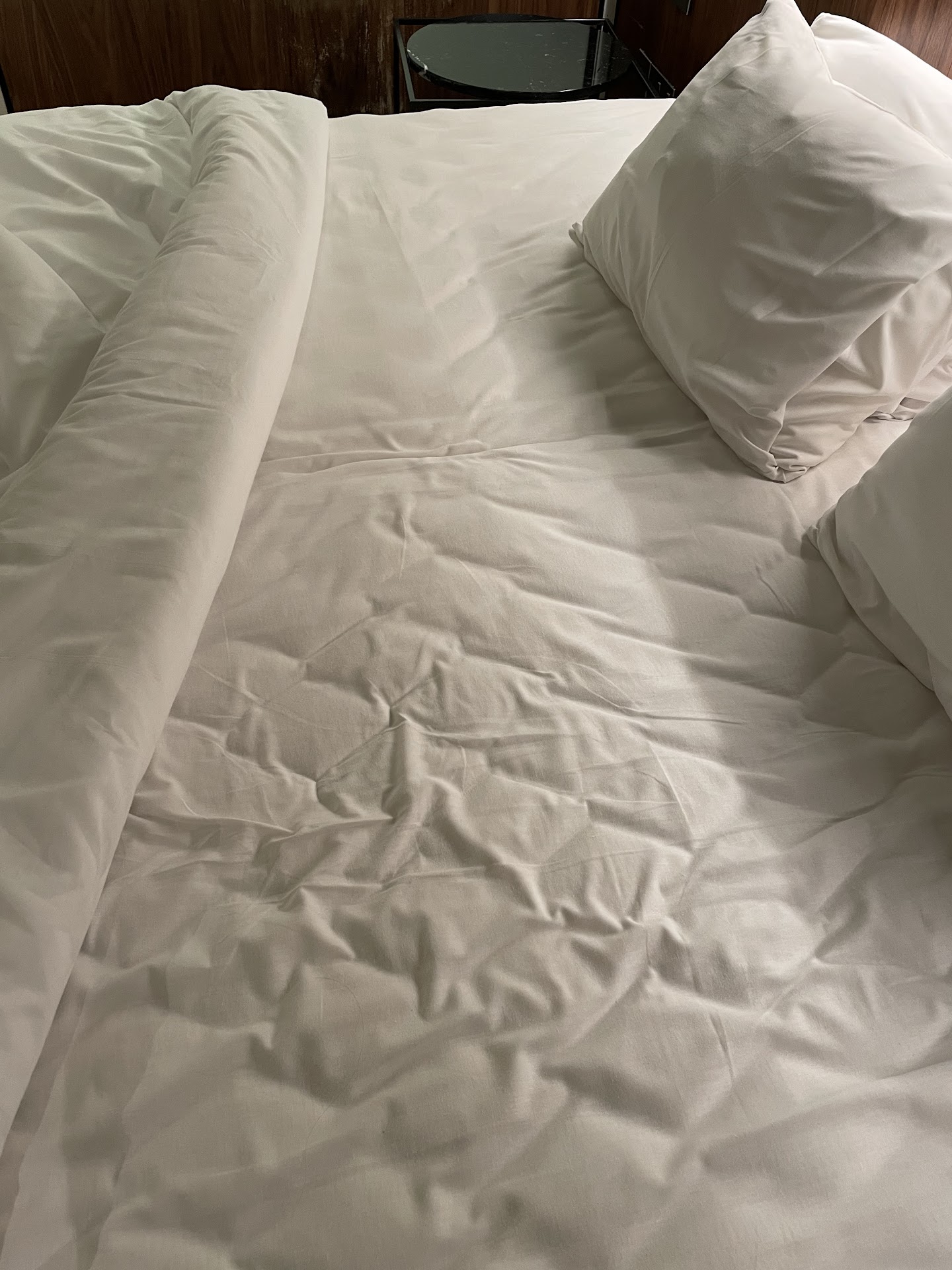 Fast forward to 4 AM. I was jolted awake by a guest in the adjacent room — not because they were partying, but because they were talking on speakerphone. Every zipper, every word, every light flicked on was coming through as if they were sitting on the end of my bed. Why? Because the only thing separating our rooms was a thin, standard wooden door that let light and sound pour through like it was made of tissue paper. The level of design failure here is mind-boggling. Who signs off on that and still claims this is a four-star experience?