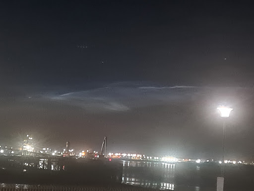 According to the Met Office, the glowing cloud phenomenon I captured is extremely rare. They are called noctilucent clouds. It is caused by ice crystals around 200,000 feet. This is not visible during the day and only happens when there are clear skies at night when both the observer and the cloud is in darkness and the clouds are high enough to still be able to pick up the suns rays. What is extra special is that the clouds I captured looked like a celestial Dolphin! ...