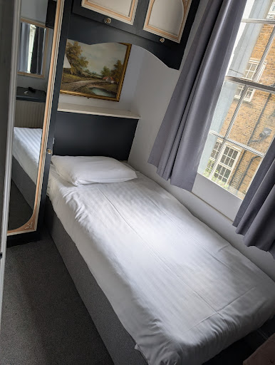 Read moreWe were always exhausted when we got in our room, that's the only reason we didn't complain or left. We had the feeling, that they simply just don't care... The price was pretty low for the central location (the location is probably the only factor to choose this "hotel"), but even if something is cheap, it shouldn't be filthy and used to the end. We had huge luggage, so the 1st floor room without an elevator was alright. We arrived quite late, we didn't expect much but we were even shocked (3 of us worked before in hospitality and had to deal with cheap bosses). The window was left open, so the room didn't smell that bad upon arrival, but as a small favour, the bed next to the window was full with various bugs. The carpet and the curtains were dusty, unrecognisable (maybe better this way) stains everywhere (on the corridor I could recognise urine and just have been hoping it was a dog). On the ceiling spiderwebs were everywhere, not new ones, they were dark grey. We didn't place our belongings in the wardrobe, it was also covered in a thick layer of dust (and the mirror, night tables, etc.) . We were surprised, that the bedsheets were clean (smelled like bleach and at this point it's important). 3 out of 4 mattresses had their springs pointing out, it's not simply uncomfortable but dangerous. None of the bedside lamps worked. The only corner of the room where I saw a little effort to get it clean was the bathroom (it's old, paint is coming off here and there, but it was not the biggest issue). In the shower we also found other guests, ants were camping there. I can't imagine this is a new problem and nobody has reported it before, It was again late at night when we got back, so we tracked where they came from and we stuck a chewed bubble gum in the small hole next to the shower to stop the invasion. (It worked but would have been nice if they noticed the issue and fixed it in 3 minutes really.) The all together experience was like an episode of Hotel hell... The young lady at the front desk was helpful and polite, and again, I felt it was useless to complain to her, she was just working there.