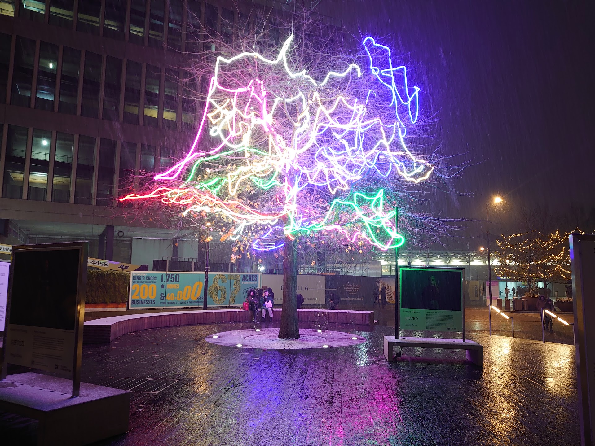 Read moreMany things to experience and see around here and coals drop yard. Some info about Granary Square "Granary Square is a large open space in the London Borough of Camden. Comparable in size to Trafalgar Square, it is part of the larger King's Cross Central development. It has been cited as an example of a privately owned public space in London. The new Central Saint Martins complex is adjacent." "The square incorporates a fountain consisting of 1,080 individual jets rising from the flush paved surface of the plaza. Each jet has its own independently controlled pump and multi-color illumination. As of March 2015, visitors to the square can interact with the fountains to play a mobile version of the Snake game." Some of the Shops are Samsung Space.NK German Gymnasium, Vinoteca, Granger & Co, Bill Granger, Drake & Morgan, Kimchee, Tortilla, Wasabi, craft coffee shop Notes, Maple & KINGS, Nike ,...