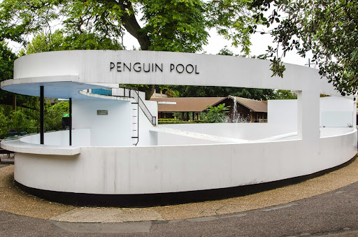 The Penguin Pool at London Zoo, Regent's Park is a penguin enclosure designed in the International Modernist style by Berthold Lubetkin and the Tecton Group. Constructed in 1934, Historic England describe it as "a key symbol of British Modern Movement architecture".