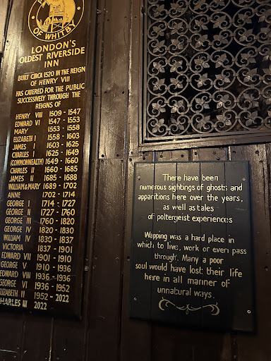 Read moreIt was here the phrase was coined 'four stars, must visit'. In short, a must-visit pub - though perhaps you must only visit once. Allegedly the oldest (extant) riverside inn in London - so that presumably excludes pubs that weren't also inns and also any canalside inns. In any event, this place oozes history and a rustic charm - particularly in the landing atop the stairs to the first floor, where a plaque warns you of ghosts and other apparitions, though mostly it is just a warning about Katrina & The Waves, who filmed their 'Walking on Sunshine' music video along Wapping Wall - their spirits are said to still linger that cold, misty street, ready to incessantly sing and dance that chorus and follow you into the bathroom when you just want a quiet pint to think things over after a hard day's work. The history of the place is something you live and breath - or was it the damp? (just kidding) Like Rupert Murdoch, just because something is old doesn't mean it is any good. The lineup of tap beers was very upsetting, most of which were miscellaneous Greene King varieties and, although there were a few cask ales, these were also from faceless breweries and presumably also Greene King. One of the cask ales had a sign on it that read 'What is cask ale?' with a helpful explanation for those who don't have more hair in their ears than on their head. So, I broke the ice by asking for one pint of their most lukewarm 'What Is Cask Ale', please. The barmaid was not particularly impressed with my quip and seemed impatient, as if there actually was someone behind me waiting to be served - perhaps one of those apparitions. This was the very moment I knew I was in the stalls for a 4-star experience. However, to park up on the outside terrace, or at a window seat indoors, to watch that wild Thames flow, a millennia of secrets bobbing along with the strewn chip packets, is a must-do London experience - though try and keep the random hangman's noose out of your peripheral vision. Frequenters of more chic, inner-city pubs such as The Devonshire would argue it needs a renovation, but those who prefer their local pub thoroughly yuppie-less and un-TikToked would say the Prospect of Whitby is perfect the way it is. With a little sharpening around the edges, this pub could be in the pantheon of Great London Pubs, but until then it remains to muck in the mire of the hundreds-strong...