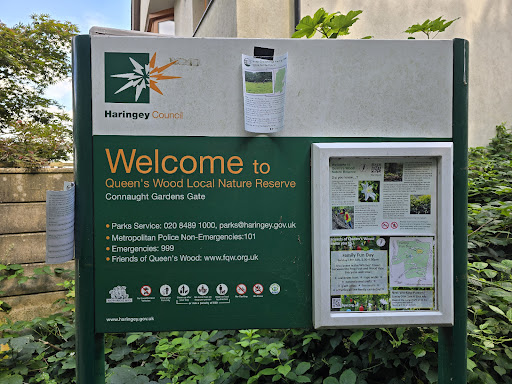 Large undulating ancient diciduous woodland (roughly 52acres) in-between Crouch End Playing Fields and Highgate Woods. Suitable for wheelchair users and children's buggies and prams. Great place for your children to enjoy and discover the natural cathedral beauty of trees. Popular with dog walkers and families. Don't get lost! As with all of nature's playgrounds, appropriate footwear should be worn. Muddy when wet! Used to be known as Churchyard Bottom Woods until the late 1800's. It was renamed Queen's Woods to honour Queen Victoria's jubilee. Coven ceremonies are held here. In 1665 it was used as a plague pit. During the 1990's it became a nature conservation area. In close proximity to The Parkland Walk and to the cottage of one of Britain's late great comedic character actor and Goon Peter Sellers. Nearest station...