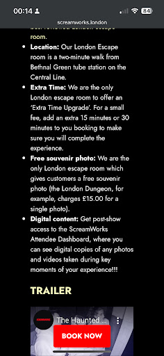 I would encourage anybody thinking about going to book - you will have the best time. From the moment you book to even beyond when you leave, you are immersed into this clever, terrifying experience. Perfect for anyone who loves horror and a good...