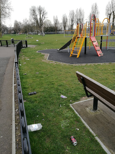 A perfunctory and unremarkable "rec", really just enough room to be a decent outdoor exercise yard and to stretch the dog's legs quickly. A flat landscape, carpeted almost entirely with nature-killing grass. It was very much the habit of planners only 2 or 3 decades ago to design green spaces like this. The recent change of letting the grass overgrow especially at the fringes is a subtle admission of past overzealousness to health and safety regs over human exposure to nature; plus, frankly, just utter public sector short-sightedness over issues like biodiversity, sustainability, local food sourcing, the importance of trees etc! And I must add one further gripe which is the building that was presumably the principal facilities venue in the park. It is now in ruins completely boarded up daubed in uninteresting black spray paint markings which are refused to call graffiti it looksl hideous and it makes you feel like we're in a country...