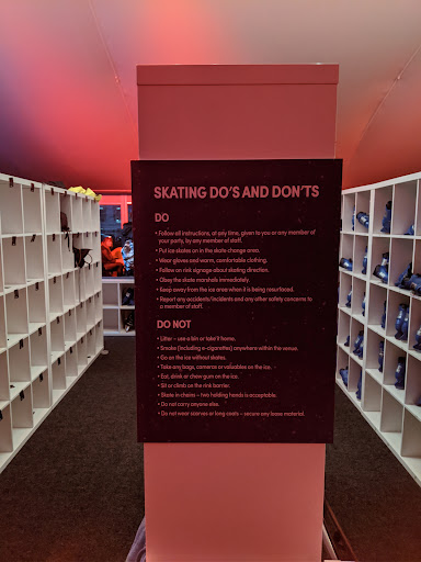 Getting onto the ice rink was super quick and easy. You enter the marquee, show them your ticket, give your shoes your wearing and they exchange it for a ice skating shoes! You need to be there 15mins before (30mins website suggest) booking time so you can get yourself ice skating shoes on time before they start promptly for timed session. No introductions or prep talk from team, although there are signs. But with the amount of people waiting for a shoe or to get on the rink, you would not know the sign boards are there.