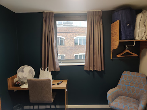 I checked in here last week and was greeted by a very helpful and friendly member of staff, though the experience rapidly went downhill when I checked into my room. It was around 20 degrees outside (not super warm) but the room was roasting! Travelodge are well aware of this as there was a sign saying how windows had been left open, duvet removed, lights kept off, etc. to make the room cooler. The bathroom was dated and the toilet felt like it was going to break any second. The shower curtain didn't tuck into the shower tray so water dripped everywhere during the shower (a remarkable amount dripped given the shower head was mostly blocked and didn't release much water at all).