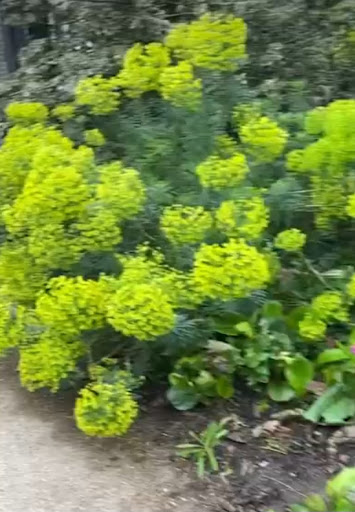 The perimeter has mixed borders of trees, shrubs and flowering bulbs and plants. There are lots of benches throughout.
