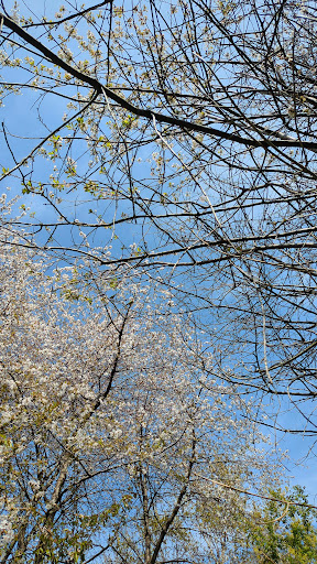 There is an entrance from where Strawberry Lane, River Gardens and Mill Lane meet. It's a metal kissing gate, and not for the portly! There's a circular path around the edges and two wooden bridges across to the island. Some paths have tree roots across them. Birds heard on my afternoon visit were magpie and chiffchaff, plus a robin. Mostly peaceful but train noise from nearby railway line.
